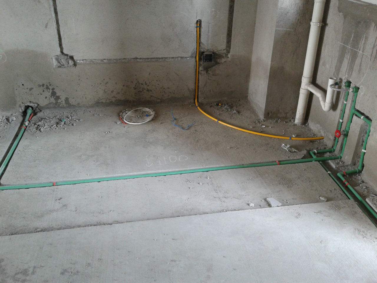由于衛(wèi)生間地板長期處于潮濕的狀態(tài),所以通常是選擇走頂。其標準是:水管在下、電線管在上,并且保證橫平豎直。