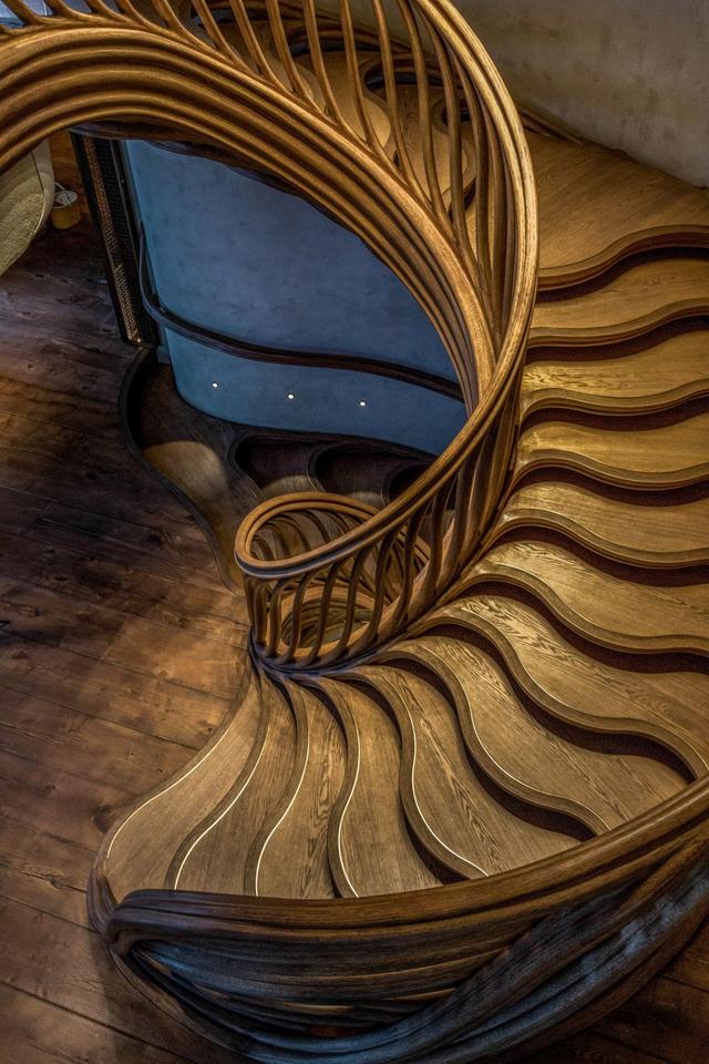 由Atmoss工作室建造的樓梯擁有您所見過的最令人驚嘆的設計之一。這是倫敦Hide餐廳的主要樓梯,看起來很漂亮。它是一個螺旋形的樓梯,無縫地分支出來,有波浪形的樓梯和扶手,完美地捕捉到了設計的神奇氛圍。就像空間在這里扭曲一般。