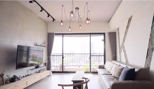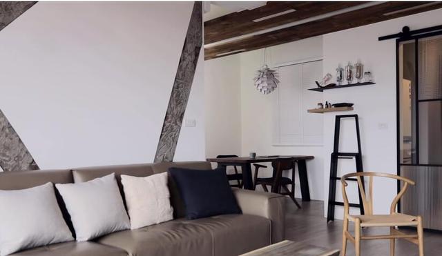 設計對客廳的設計定義在工業風,沒有過多的花哨,尤其是沙發背景墻,更是以屋主英文名字的首拼字母做為背景,打造不一樣的獨特畫作。