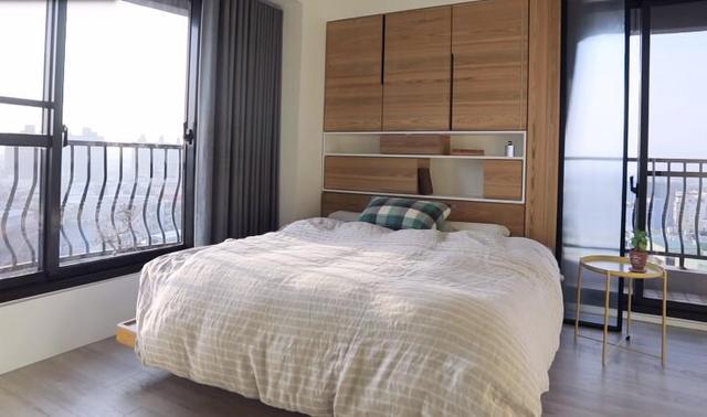 主臥的系統柜看上去短了一截,因為設計師想更好的將自然光引進室內,而桌的兩面都有窗戶,外面的光景一覽眼底,待拉上窗簾又是一個很好的休憩空間。