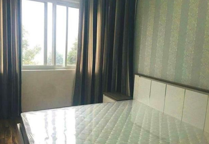 這個房間是給父母的,床雖然不是新換的床,但是款式很不錯,成色也很新,床頭背景貼上壁紙,效果還是很大氣的。