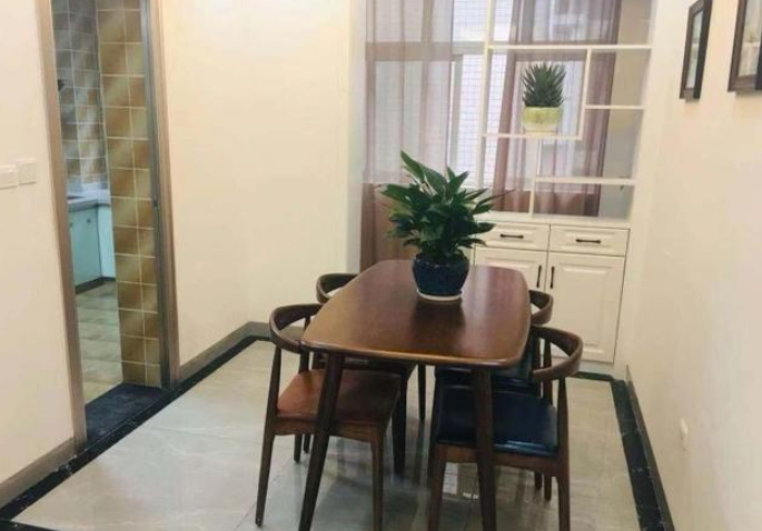 餐廳比較小,靠窗還設計了一組隔斷柜,當做餐邊柜儲物擺擺酒盞杯具,實用又好看。