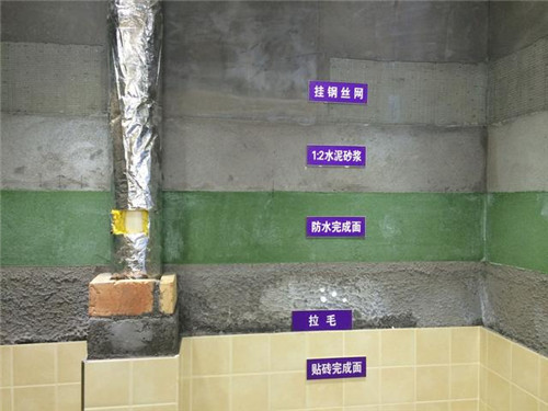 注,如果是衛生間的前面要刷乳膠漆,通常是有5道工序:掛鋼絲網、抹水泥砂漿、刷防水、拉毛、貼磚。