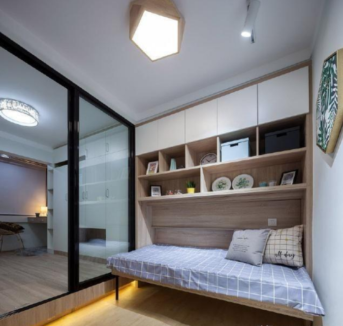 表哥大學就是學環境藝術設計的,雖然之后沒有從事這方面的工作,不過自己那套45㎡的單身公寓就是他自己設計的。到底是學設計的,想法跟我們都不大一樣,進門愣是沒找到臥室在哪里,表哥笑著說過道就是臥室,墻面藏了一個儲物柜,打開就是臥床了,不說還真沒看出來,你見過不?