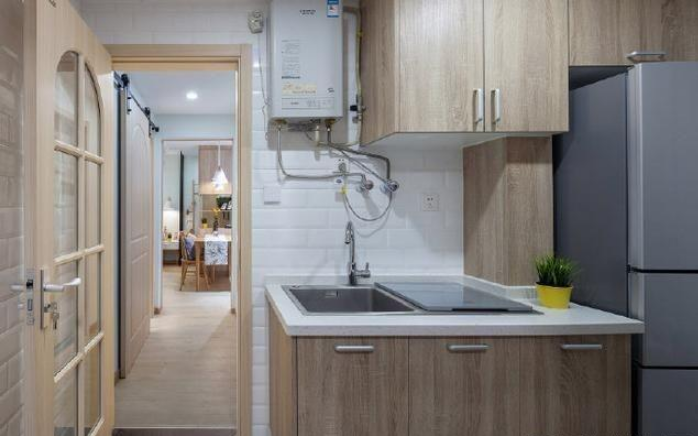 換個角度看廚房,門和門框柜子都是同一個色調,整體看著舒服,要不是表哥說是他的家,還以為是哪個小姐姐的房子呢。