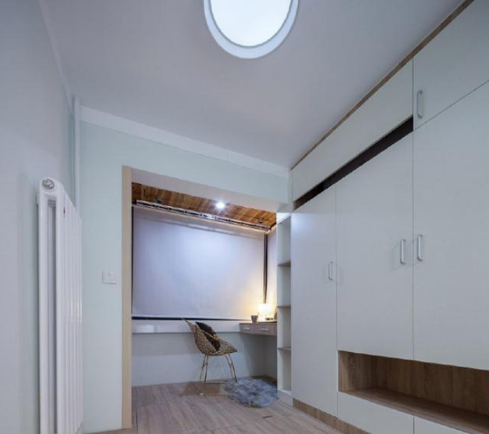 書房和衣帽間集合到了一起,還剛好利用上了這個小陽臺,空間也得到最大化利用,底下都是儲物榻榻米,不愁沒地方做收納。