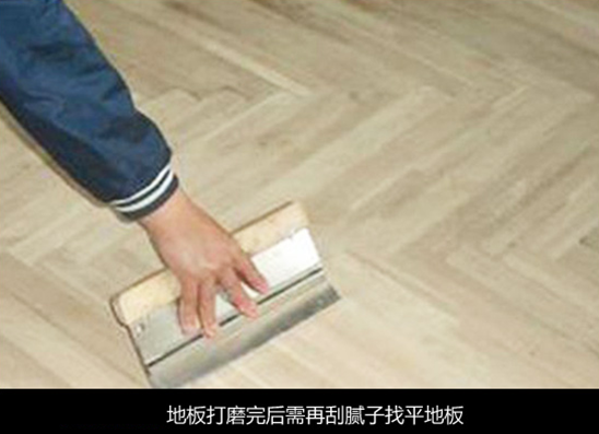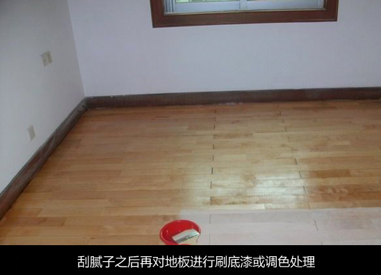 地板打磨完后,需要先刮除膩子;然后,使用與地板漆配套的專用透明底漆膩子,刮涂在打磨好的地板上,待干后才可進行木地板翻新的下一步操作。
