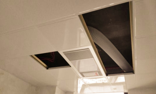 3.在鋪設集成吊頂電器時要設檢修。要是吊頂選用暗架的,那就一定要設檢修孔,要是沒有設置檢修孔,如果一旦設備出現問題就很難檢查具體什么原因、什么位置有問題,難以修復。所以,這里建議鋪設管線的吊頂還是設置檢修孔為好,設置時可設置在隱蔽的位置,然后在進行修飾下,這樣就不難看了。