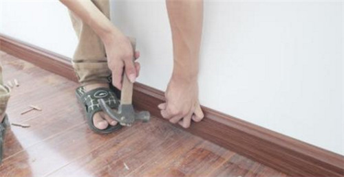 2、如果室內的墻壁太濕,是不能安裝踢腳線的,對于二手房改造換地板的朋友,可以把之前的踢腳線打掉,再用水泥將墻壁,墻角等部分進行修整平齊。鋪貼地板時要保持板與板之間的接口要緊密,平齊,還需要錯形,離門框還需留一些間隙。