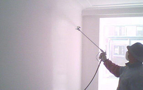 4.在進行墻面噴涂之前,需要先將油漆按照說明書進行合理配比,進行充分攪拌后,再裝到噴涂工具里。接下來是根據噴涂用量,來對噴嘴進行適當大小的調整,然后進行預噴,看看效果如何。如果噴涂沒有問題后,則可以正式進入施工階段,應均勻的移動噴頭,按上下方式來進行施工,完工后則需要讓墻面靜置半個多小時。