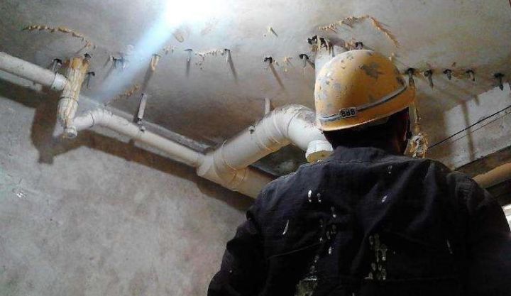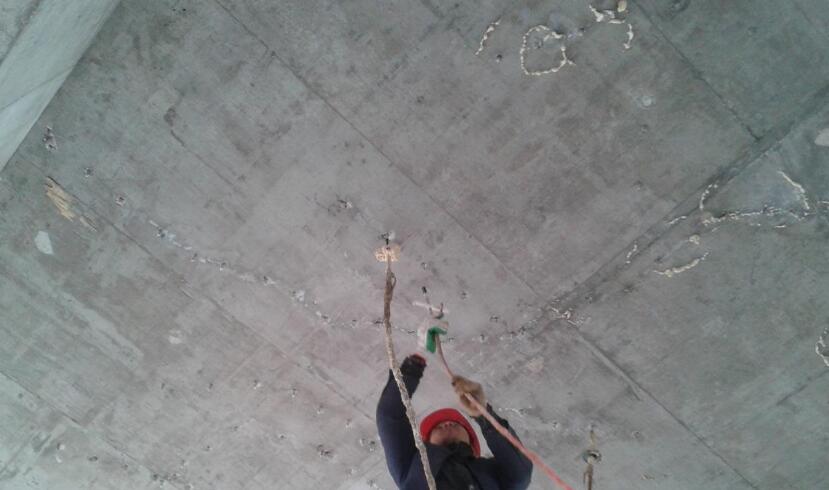 2、首先找出地下室頂板的裂縫漏水點,沿漏水點周圍500mm處將表皮鏟除,露出結構層。