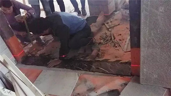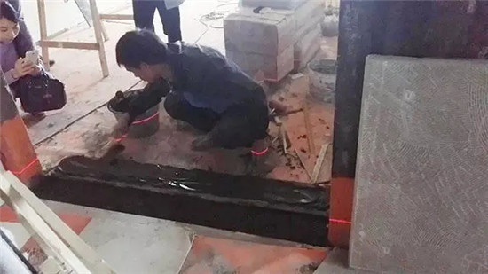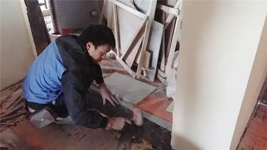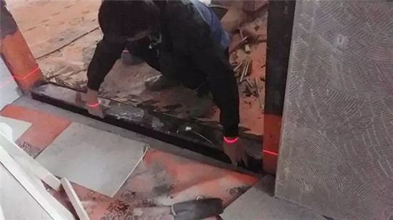 如果門檻石沒鋪貼平整的話,那就要撬開重新做。師傅還介紹說,門檻石兩邊要留有一定的縫隙,用來勾縫美縫劑用的,這樣,就能保證廚房水不滲漏到客廳了。