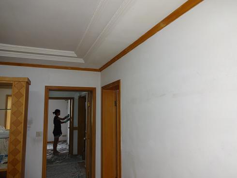 1、批膩子,大面積滿批膩子(配比為,白水泥:107膠=10:4)一遍,干燥后用砂紙打磨。大面積再滿批一遍白水泥膩子(配比為,白水泥:107膠:滑石粉=10:4:2),要保證整個板面平整,再進行細磨。