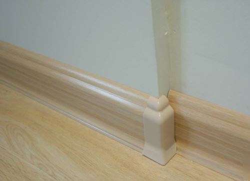 pvc踢腳線是木踢腳的便宜替代品,外觀一般采用模仿木踢腳設計,用貼皮呈現出木紋或者油漆的效果,pvc踢腳線材質穩定、無有害氣體釋放,且價格便宜,但貼皮層可能脫落,而且視覺效果也較木踢腳線差。