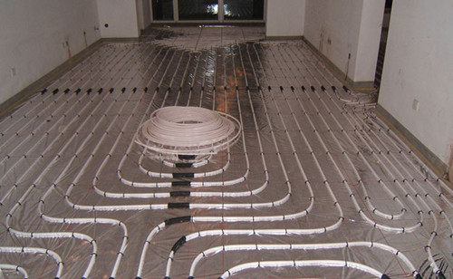 4、鋪設盤管要嚴格按照設計進行鋪設,管道鋪設間距和設計相符合,靠近外墻、外窗處及樓層挑空等耗熱量較大區域的管路要加密,并用塑料卡釘將管材固定于復合保溫板及反射膜上。