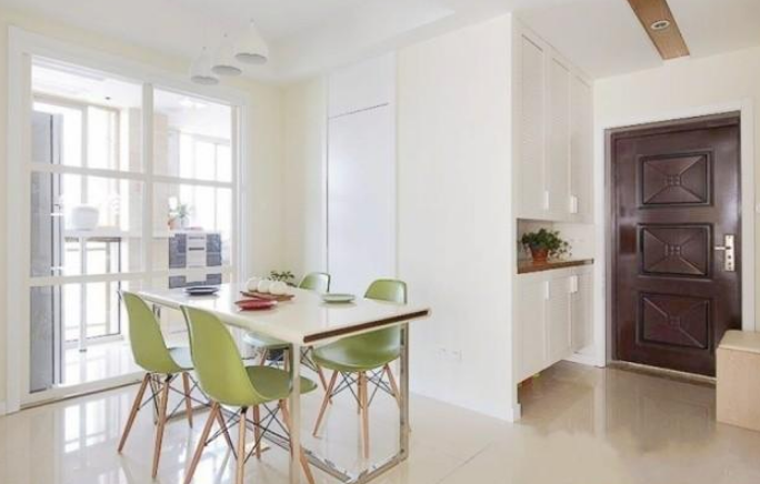 餐廳考慮很多儲物功能,靠墻的位置一扇同色系壁柜,可以安置很多零零碎碎的東西。