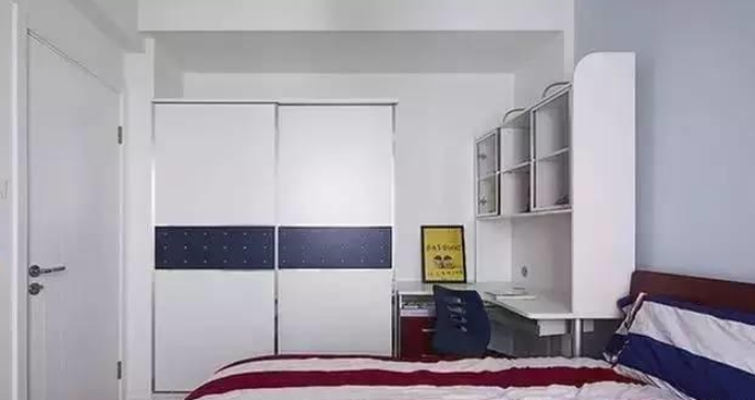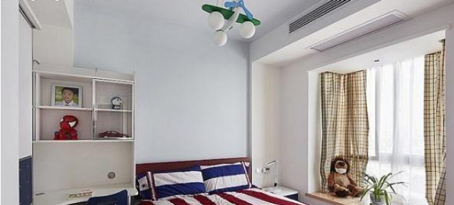 兒童房的床、書桌、椅子、柜子還有床上用品都搭配的非常協調。