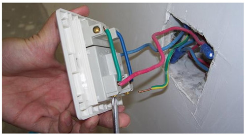 步驟5.電線穿好后,安裝好開關插座,鎖好螺絲。就可以將室內的電路打開,進行試用。如果沒有問題,可以將墻面不平處,修補好。