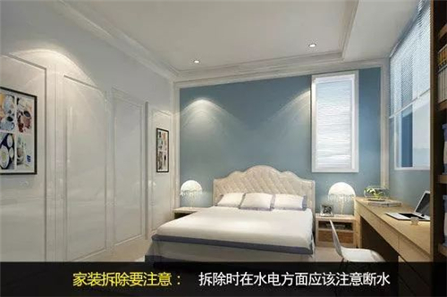 第一要注意斷水的問題,水可分為一般的家用水及消防用水,在斷水時消防用水不能隨便切斷,必須先注意總開關以及和大樓相關單位的協調,尤其如果未處理好可能會造成水流到樓下而造成住戶糾紛。在斷電方面。家用電切斷時記得要配具有安全保護裝置的臨時電,以利公敵進行工作。消防電比如緊急照明設備或感應系統如感熱器等要保護裝置,拆除時務必小心,并且記得要恢復原狀。