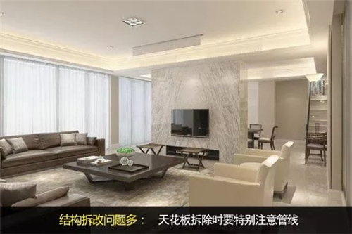 天花板拆除時要特別注意管線,內藏的管線有可能是屬于樓上的管線,比方中央空調、消防灑水管。尤其曾經有變更過格局的,里面可能藏有不同用途的線路。