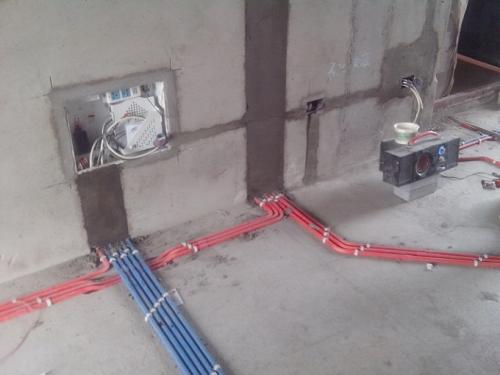 水管與線管交叉時,地面必須水管在下,線管在上,當水管發生滲漏時,水會在電路下方,不直接影響電路的使用安全。