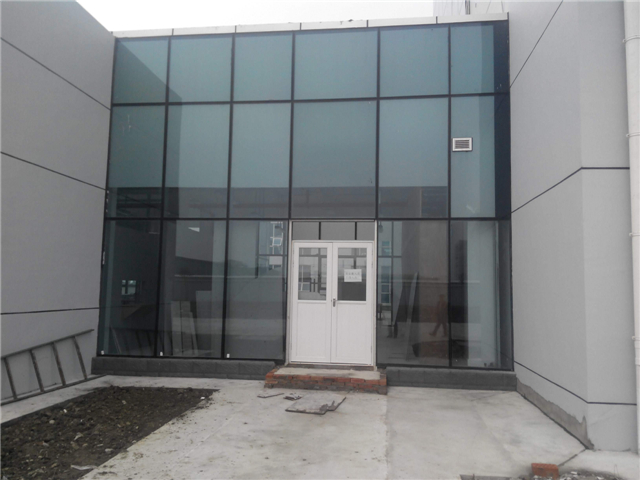 2、是將鍍膜玻璃先固定在頂部和底部鋁合金型材的鑲嵌槽內,在玻璃與豎桿表面形成一條膠縫空槽,而后在現場將結構膠灌滿膠縫空槽,形成豎向結構膠玻璃裝配體系。這種生產方法由于是在現場注膠,材料表面清潔與干燥,注膠時環境清潔程度均很難得到充分的保證,而且往往在結構膠未固化前就要承受風荷載,影響粘接強度。一般僅限于用建筑物與鋁合金框架體系間無安裝間隙的建筑物,除非萬不得已,不宜采用。在現場注膠時用各種方法對正在注膠現場給予臨時封閉保護,鋁材和玻璃粘接面要作好表面清潔。一般在大風天、雨天和冬季結冰時不能現場注膠。近來我們發現,一些廠家為了施工簡單,進度快,本應在工廠內注好膠再安裝框架,不在廠內加工,而均在現場注膠,這是非常錯誤的,應當阻止。