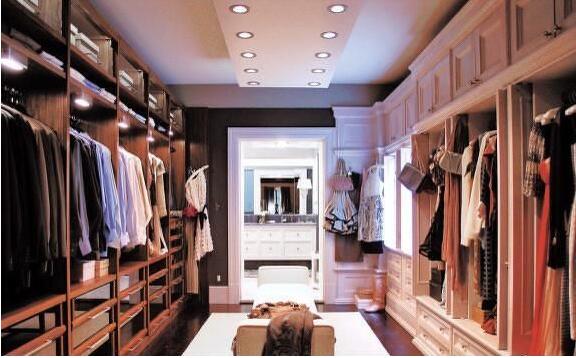 (1)衣帽間裝修時,需要采用科學的照明設計。衣帽間一般都設置在房間內部,因此一般不具備窗戶,這便提高了衣帽間對于照明的要求。一般來說,衣帽間內的照明最好選擇內置的燈泡,再加上燈罩進行使用。這樣的做法可以避免安全隱患的發生。另外,照明的開關位置也需要經過精心設計,需要符合消費者的開關燈使用習慣來設置。
