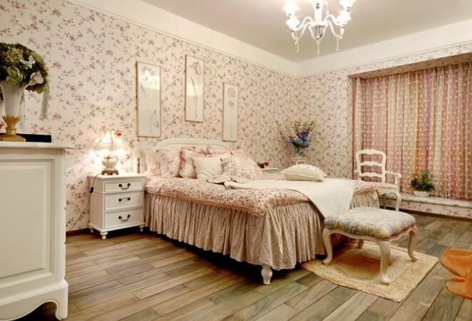 (1)田園風(fēng)格壁紙,比較講究質(zhì)感,通常以優(yōu)雅的大花為典型,腳面料通常比較厚實(shí),搭配與壁紙同等色系的素色或者是花色,可廣泛的用于臥室的床頭。