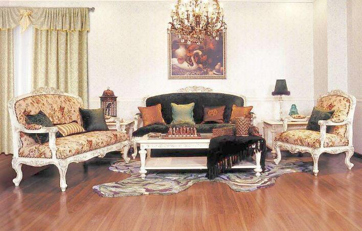 3.偏好鮮艷色系:尤其是“巴洛克式家具”色彩都很強烈,其中又以金色為其主色,多用鍍金或以金箔來裝飾,顯得金碧輝煌;“洛可可式家具”的色彩較為柔和,米黃、白色的花紋圖案是其主色;“新古典家具”色彩較偏向暖色系,如原木色等。