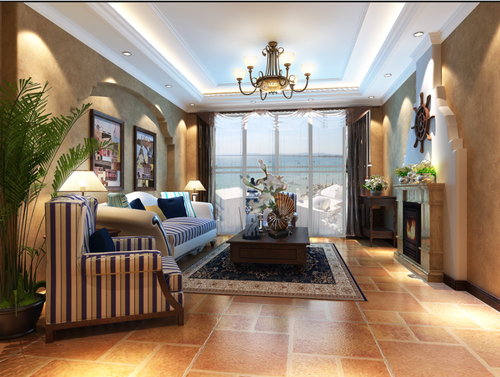 3、色彩大多為白色、藍色、實木色、紅色、黃色。大方格的陶磚、白墻、原木家具、手工地毯、瓷制掛盤等,隨意,不必考慮是否與主題一致。給人天地遼闊的空靈感覺,無限接近自然,享受陽光。藍與白,黃、藍紫和綠,土黃和紅褐是地中海風格的經典色彩搭配。