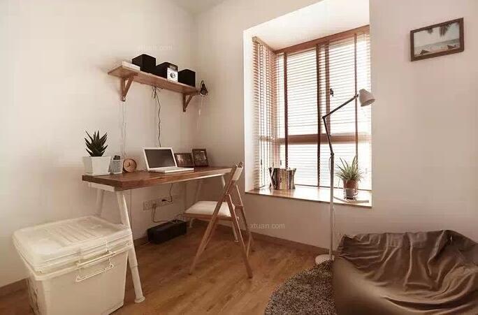 如果小戶型居室沒有足夠的面積將書房與臥室設計成獨立的兩個空間,可將它們合二為一使用,大大提高了空間利用率也增強了空間功能性。