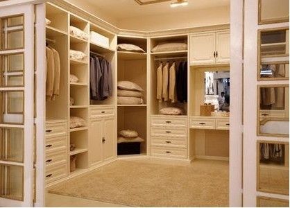 步入式衣帽間的理想面積至少在4平米以上,寬度不低于1.5米,應(yīng)分設(shè)不同的區(qū)域。如:掛放區(qū)、疊放區(qū)、內(nèi)衣區(qū)、鞋襪區(qū)、被褥區(qū)等專用儲(chǔ)藏空間。