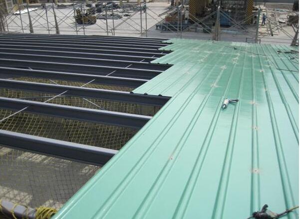防腐板在與螺絲連接時,最好加上蓋板才能保證固定。如果防腐板小于12m是不需要搭接,大于12m則需要搭接。搭接的長度越長,為了安全起見,施工者需要在搭接處施涂二道密封膠,并且橫向、縱向搭邊處不要收邊。施工者可以直接將用鉆尾螺絲釘固定,并施涂密封封膠。此外,防腐板縱向長度方向搭接應設置在檀條附近。