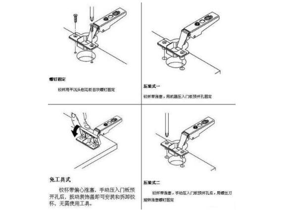以下為櫥柜門鉸鏈的具體安裝方法,可供消費者參考:
