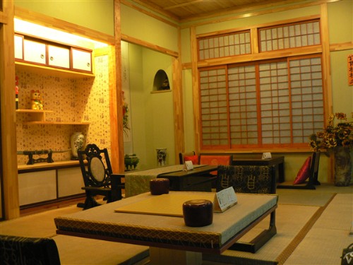 3、日本居民的住所,客廳、飯廳等對外部分是使用沙發、椅子等現代家具,臥室等對內部分則是使用榻榻米、灰砂墻、杉板、糊紙格子拉門等傳統家具。