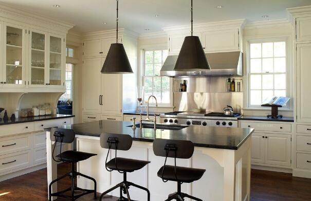 (1)北歐櫥柜造型,大戶型北歐風格廚房裝修基本有足夠的空間,廚房造型主要分為U型、L型和島型三類。U型和L型櫥柜設計直接抵達天花板,充分利用了高出的空間,也擴大了櫥柜收納功能。而島型的廚房設計則是在廚房正中心設計一個臺面猶如小到一般,主要提供備菜或是吧臺的功能。島型臺面下面也可以設計一些收納柜。