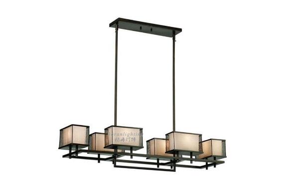 (2)海斯瑞三頭鐵藝現代風格仿古長方形新中式吊燈,價格在每套500元左右。