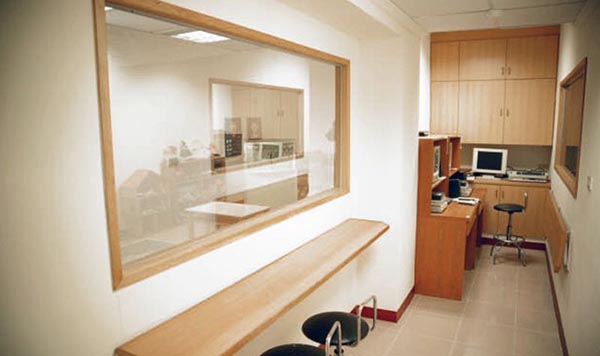 而在制作單向透視鏡的時候,玻璃表面會被涂抹上一層輕薄反光材料(反光油漆或金屬),觀察者直接位于前方觀察時,看到的與鏡子里的并沒什么差別,也是反射圖像。但由于反射涂層太薄,光線并未被全被反射到觀察者眼中,而是有大部分光線穿透了玻璃,向另一面繼續(xù)傳播。此時一旦背面有人,他就能看到站在鏡子前的觀察者的圖像,好像是在透過一面玻璃看到對面的情況一般。