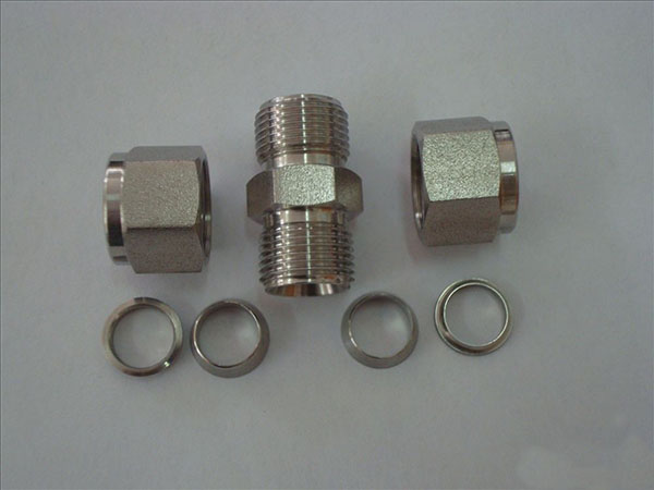 卡套式管接頭主要由具有24度錐形孔的接頭體:帶尖銳內刃的卡套;和起壓緊作用的壓緊螺母;三部分組成。