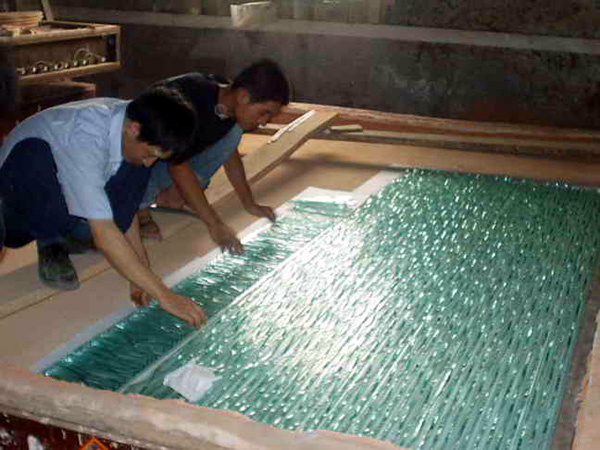 熱熔玻璃又稱熱熔立體吸音玻璃,就是通過熱熔爐把玻璃加熱到熔融狀態(tài)(加熱溫度一般在750攝氏度),使玻璃形成自然的或所要求和各種形態(tài)和立體圖案,具有吸音效果,光彩奪目,格調(diào)高雅,通過顏色與工藝的結(jié)合,給人一種朦朧的感覺和想象空間,其珍貴的藝術(shù)價(jià)值是其他同類產(chǎn)品無法倫比的。