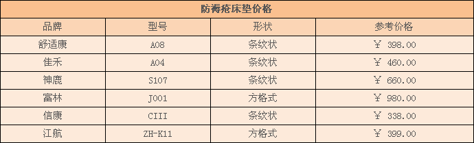 因為要使用電動裝置進行噴氣,防褥瘡氣墊價格也不便宜,稍差一點的大概在四百元之七百元之間,而材質較好的氣墊價格稍貴,大概在七百元至一千五百元之間。