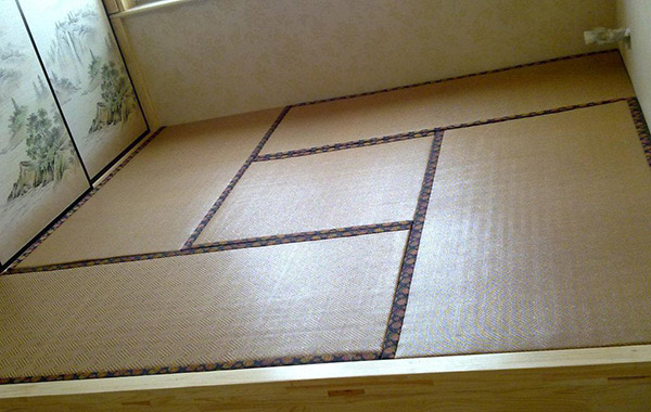由于榻榻米床墊是使用本色的席面,難免色彩單一,但榻榻米的布藝包邊卻有許多花色可以選擇。一般來講,料理店等公共場所多用藍色飾邊的榻榻米,而家庭中多采用紫紅色或碧綠色飾邊的榻榻米。