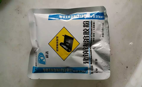 而它的施工用法是:在容器中,按比例加入一定量的清水,邊攪拌邊慢慢加入膠粉注意不能一次加很多,更不能先放膠粉后放水,加完繼續攪拌溶解后,靜置4到6小時。而在黏貼卷材時,膠粘試劑量約大為2%。
