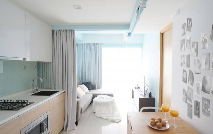 (2) 空間劃分:超小戶型空間裝修需要提升空間利用率,往往希望一個空間能有多蟲的用途,則不能使用隔斷等進行硬質的空間劃分。要多考慮開放式或者交互式空間布局,如餐客一體。餐廚一體等。