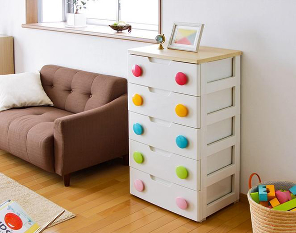 愛麗思品牌的塑料儲物柜它的邊角是采用四角圓形的設計,這樣設計更加的安全還具有一定的美觀性,該品牌的抽屜層數還可以根據自己的需求來增加或減少。在抽屜的底部還加上了四個防滑的底墊,這樣有效的防止它刮傷地板。是件非常實用的儲物柜。