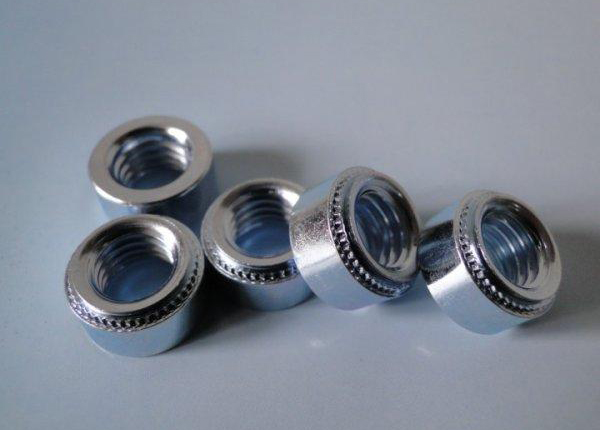 壓鉚螺母是應用于薄板或鈑金上的一種螺母,外形呈圓形,一端帶有壓花齒及導向槽。其原理是通過壓花齒壓入鈑金的預置孔也,一般而方預置孔的孔徑略小于壓鉚螺母的壓花齒,通過壓力使壓鉚螺母的花齒擠入板內使導致孔的的周邊產生塑性變形,變形物被擠入導向槽,從而產生鎖緊的效果。壓鉚螺母主要使用在非結構承力的螺栓連接中,如軌道客車、公路客車、船泊等內飾件的連接,改進的可防止自旋的鉚螺母比飛機用托板螺母更加優異,其優點是重量更輕,不用提前鉚釘固定托板螺母,基材背部無操作空間仍可使用等。