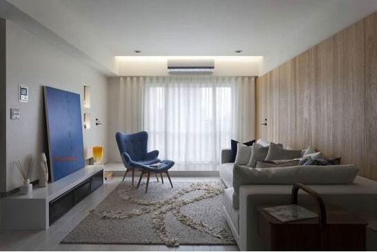 業主朋友的客廳空間較大,想通過地臺將客廳分成兩個功能區,打造富有層次感的空間,可將地臺處的空間設計成封閉性的空間,能用作休息區、學習區。此處安裝推拉門能節省空間,體現了兩個空間明顯的獨立性。