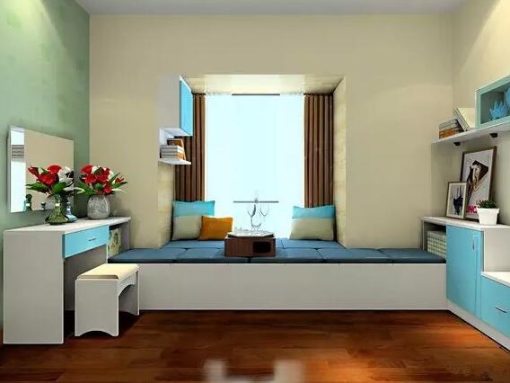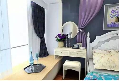 (2)飄窗梳妝臺要按照原有的結構來。一般來說,飄窗的深度在60cm以上;長度根據采光和日照時長來決定,大約在120cm以上;至于高度,如果是自帶窗臺,不會很高,落地窗在220cm左右。要節省梳妝臺這個空間,還得看戶型是如何的,如果家里有老人小孩,更要考慮行動是否便利以及安全的問題。所以飄窗梳妝臺這個改造設計,一定要跟設計師多多溝通,作出最合理的判斷。