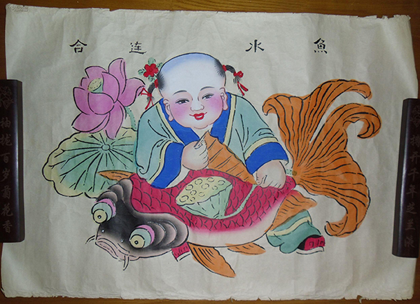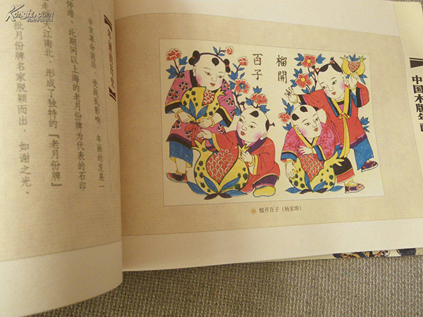 5.印刷:大都是用色版套印,一版一色,一般要套印五、六次才能把一幅年畫印好。套印最講究的是套版準確而不偏移,印出來的作品才能與原作保持一致。