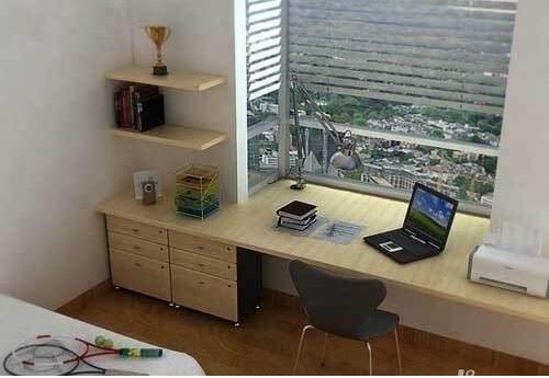 窗臺較高的外飄窗改造成書桌,可為房間布置了一個學習辦公區(qū)域,使休息與工作兩不誤,勞逸結(jié)合才是懂得生活,此改造適用于書房。另外,還可改造成梳妝臺,方便每天整理儀容儀表。這種外飄窗改造適用于臥室。
